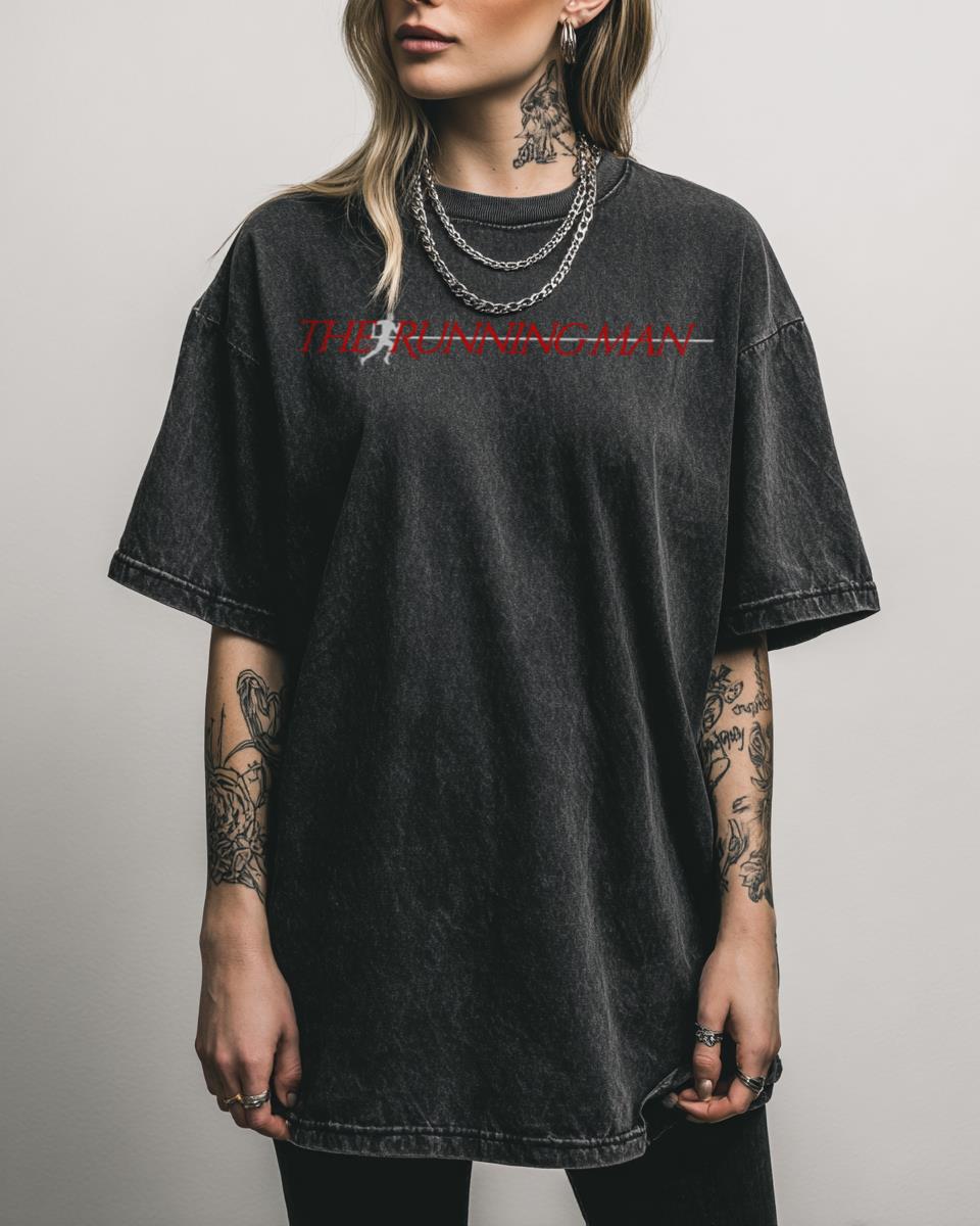 Are you ready for the ultimate game show? Step into the dystopian future of “The Running Man” with this unique T-shirt featuring an iconic audience member. This design pays homage to the classic 80s Arnold Schwarzenegger film, capturing the dark humor and thrilling action. Perfect for fans of vintage sci-fi, action movies, and Arnie’s unforgettable…