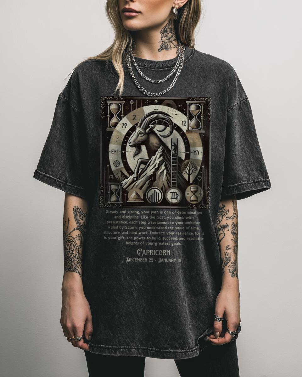 Why This Capricorn Constellation T-Shirt is Perfect for Earth Signs? Embrace your ambitious spirit with this captivating Capricorn Constellation T-Shirt, celebrating the determined Earth sign. This unique black acidwash tee, featuring celestial artwork of the Sea Goat, is ideal for astrology enthusiasts and those born under the Saturn-ruled star sign. Features That Make This Zodiac…
