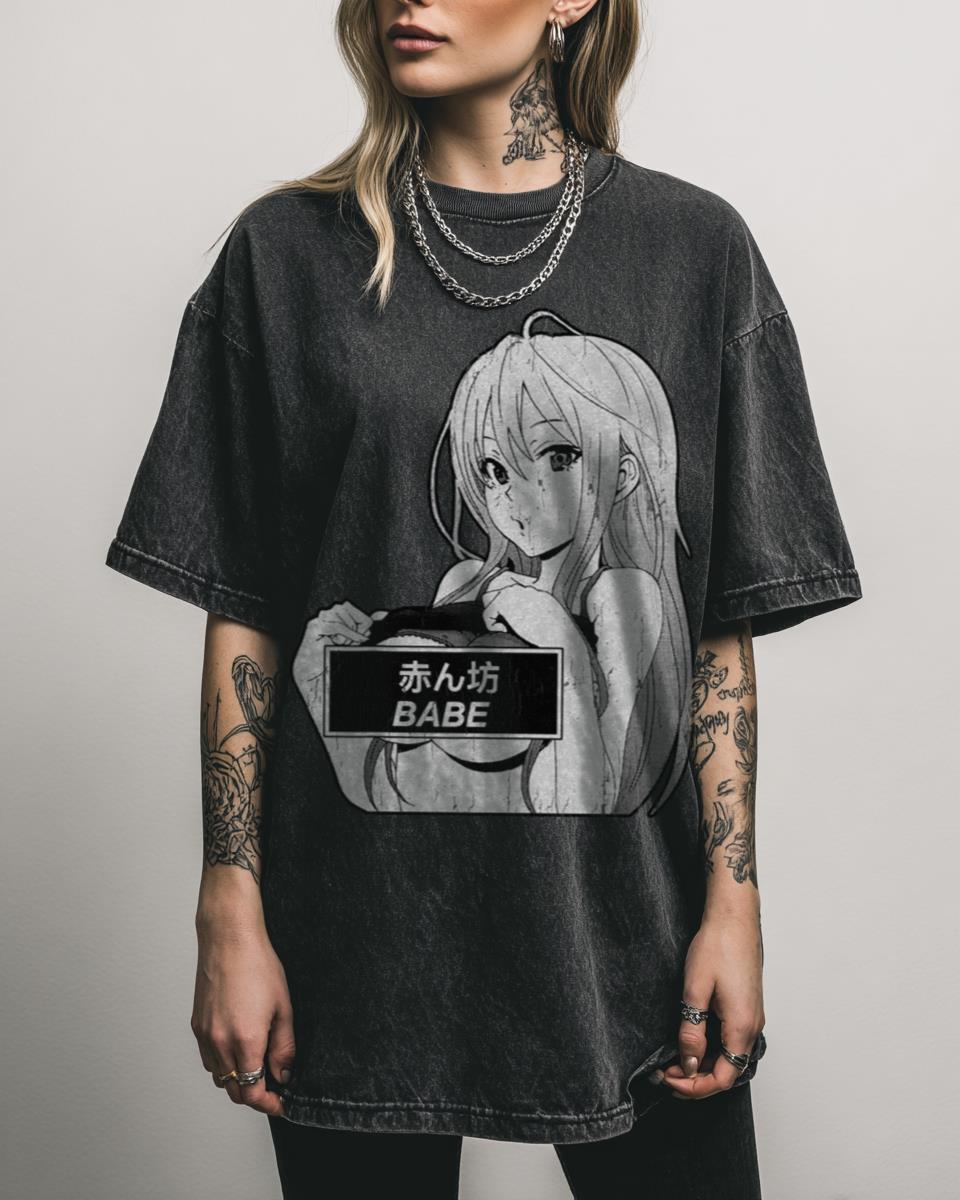 What Makes This Cheeky Puff Puff Anime T-Shirt Playful? Add a touch of playful anime charm to your collection with this Cheeky Puff Puff Anime T-Shirt, featuring a fun bunnygirl design. This black acidwash tee, crafted from 100% cotton, is inspired by popular anime and manga tropes, perfect for gamergirls and fans of lighthearted ecchi…