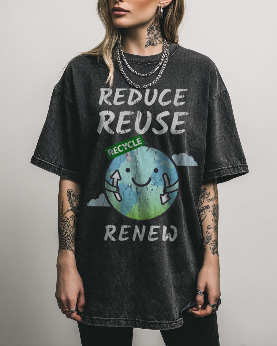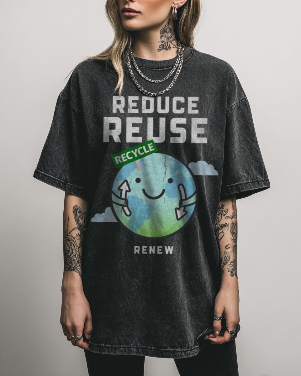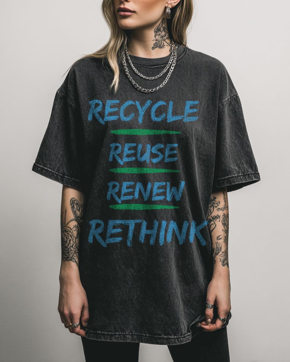Why This Recycle Reuse Renew Rethink T-Shirt is Impactful? Champion environmental change with this powerful Recycle Reuse Renew Rethink T-Shirt, featuring a core message for a sustainable future. This black acidwash graphic tee is perfect for eco-activists and anyone passionate about protecting our planet. Key Features of This Eco Activism Graphic Tee: Empowering Environmental Message:…