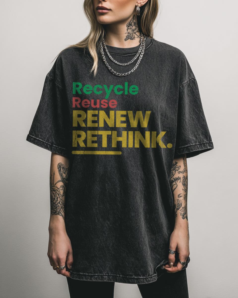 Why This “Rethink Recycle Reuse Renew” T-Shirt Promotes Sustainability? Inspire change and promote conscious living with this powerful “Rethink Recycle Reuse Renew” T-shirt. Featuring a clear environmental message, this black acidwash tee is perfect for anyone passionate about sustainability, green living, and protecting our planet, making a statement with every wear. Features of This Eco-Friendly…