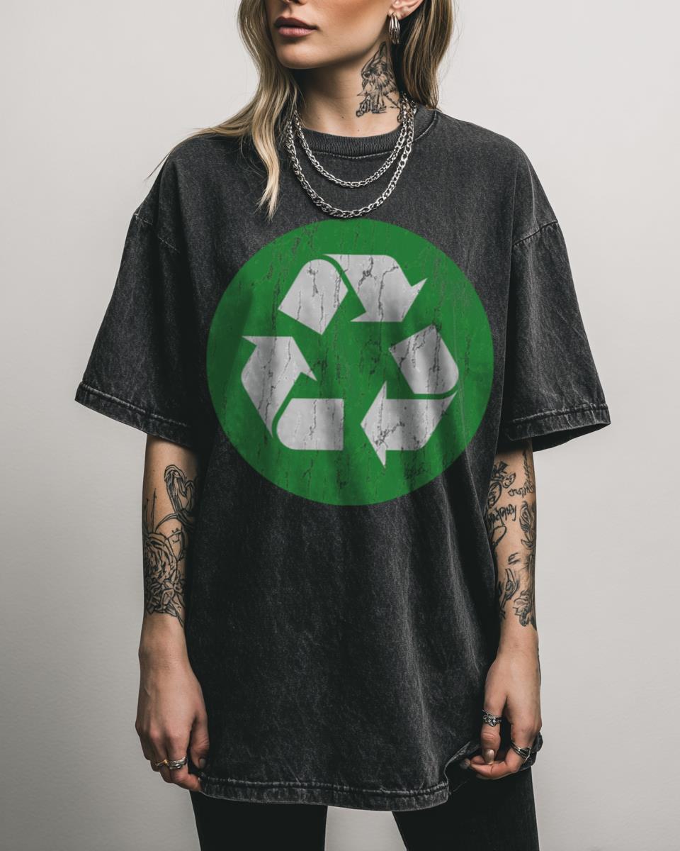 Are you passionate about sustainability and caring for our planet? Wear your commitment to the environment with this ‘recycle logo’ Black Acidwash T-shirt! This design features the iconic recycling symbol, often incorporated with a heart, signifying love for the Earth and a dedication to ecological practices. It’s a simple yet powerful statement for Earth Day,…