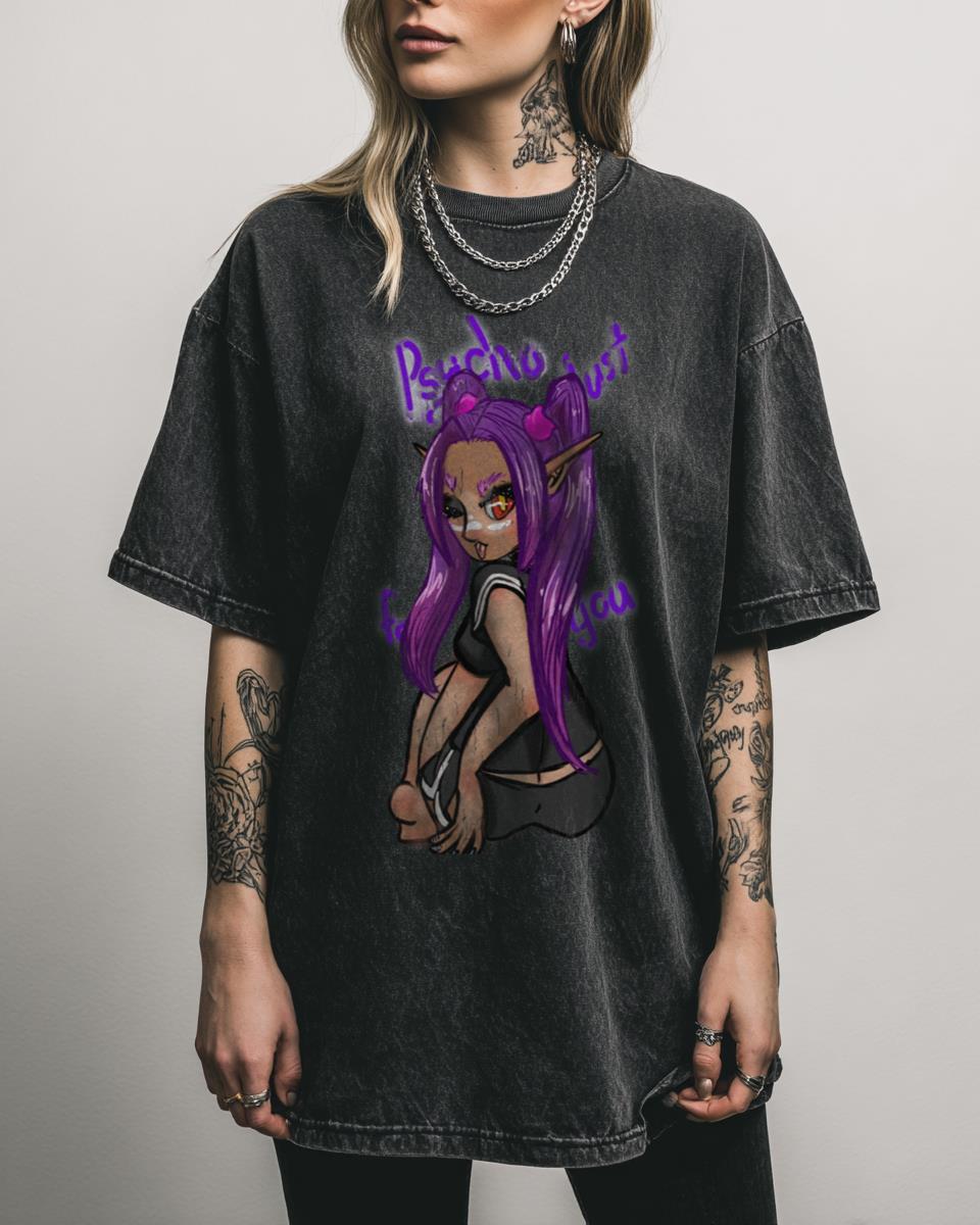 Looking for an edgy statement piece that captures a unique aesthetic? Dive into the captivating world of anime with this striking ‘Psycho Just For You’ design. Featuring an enigmatic anime girl rendered in a bold, vibrant purple palette, this artwork exudes an edgy, yandere-inspired charm. It’s a perfect blend of cute and creepy, sure to…