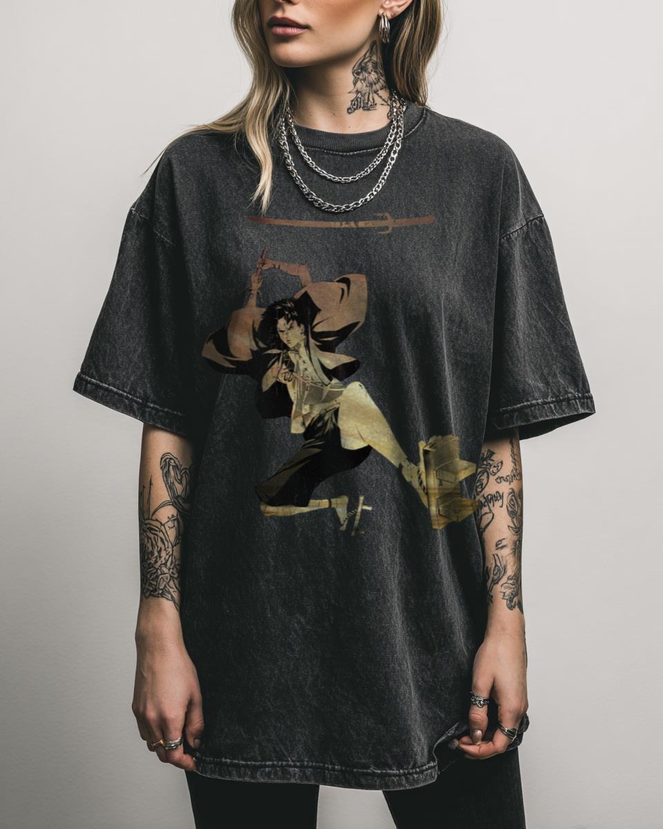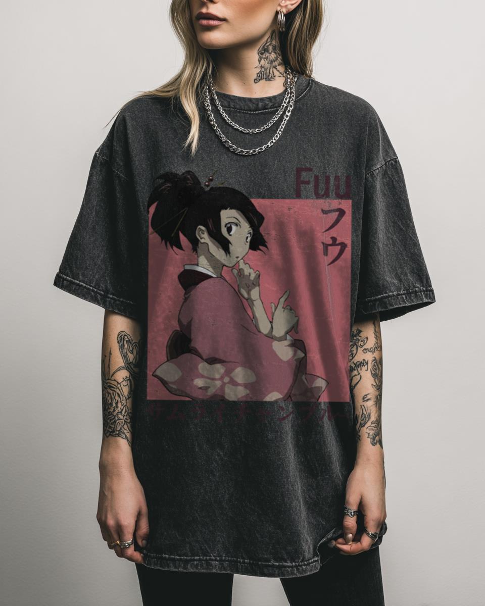 What Makes This Fuu Samurai Champloo Anime Graphic Tee Unique? Embark on a journey with this Fuu Samurai Champloo Japanese anime graphic tee. Featuring a fan-inspired design of Fuu alongside Mugen and Jin, this black acidwash T-shirt is crafted from 100% heavyweight cotton, perfect for fans of the iconic hip-hop samurai series. Why Samurai Champloo…
