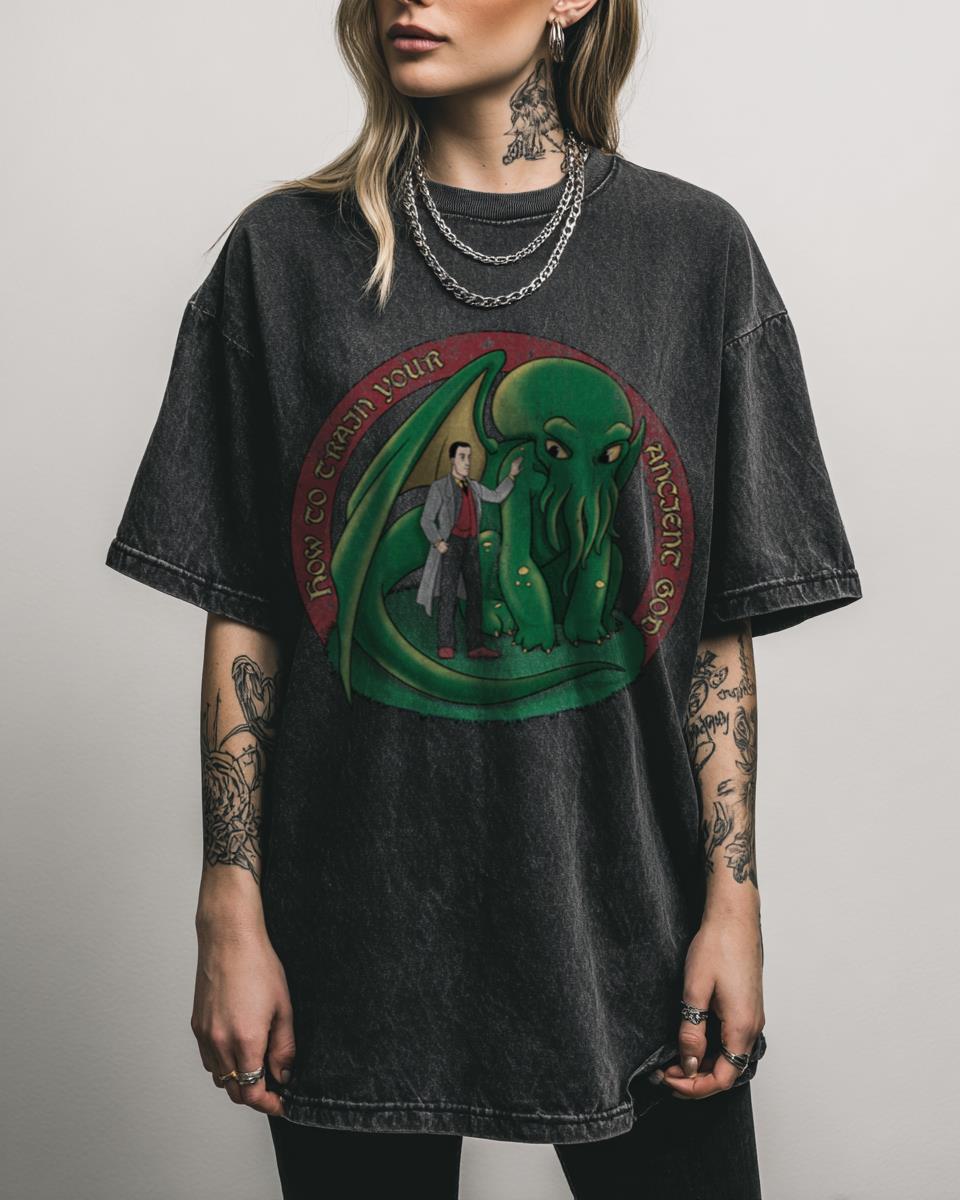 Unleash the Humor with This Cthulhu Ancient God Parody Tee? Embrace the cosmic absurdity with our Cthulhu “How to Train Your Ancient God” Lovecraft T-shirt! This fan-created graphic tee offers a humorous parody, blending the eldritch horror of Lovecraft’s Cthulhu with a playful twist, perfect for fans of dark fantasy, geek humor, and unique monster…