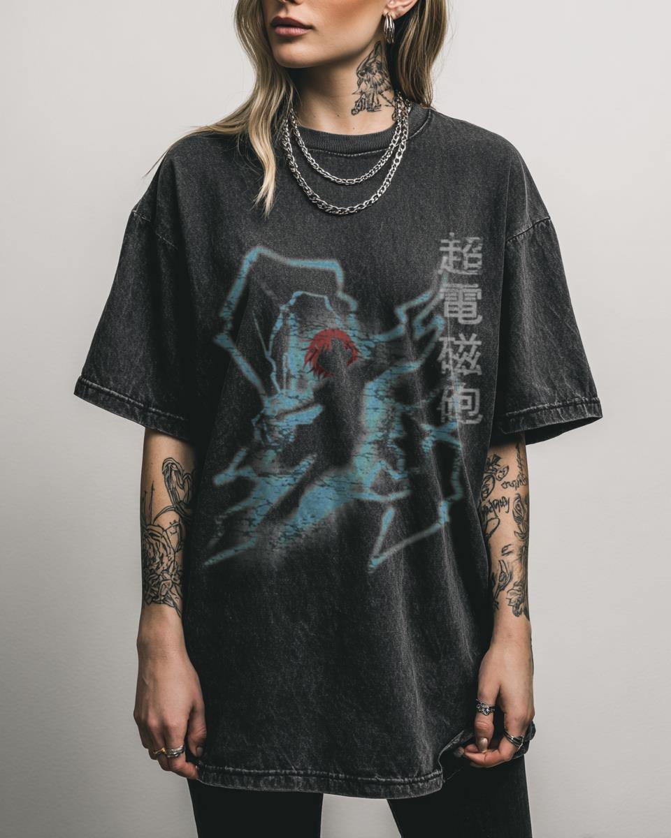 What Makes This Electric Girl Mikoto Railgun T-Shirt a Fan Favorite? Harness the power of electricity with this awesome Electric Girl Mikoto Railgun T-Shirt. Featuring a dynamic design inspired by Mikoto Misaka from *A Certain Scientific Railgun*, this **black acidwash graphic tee** is perfect for anime and manga geeks. Key Features for Railgun & Index…