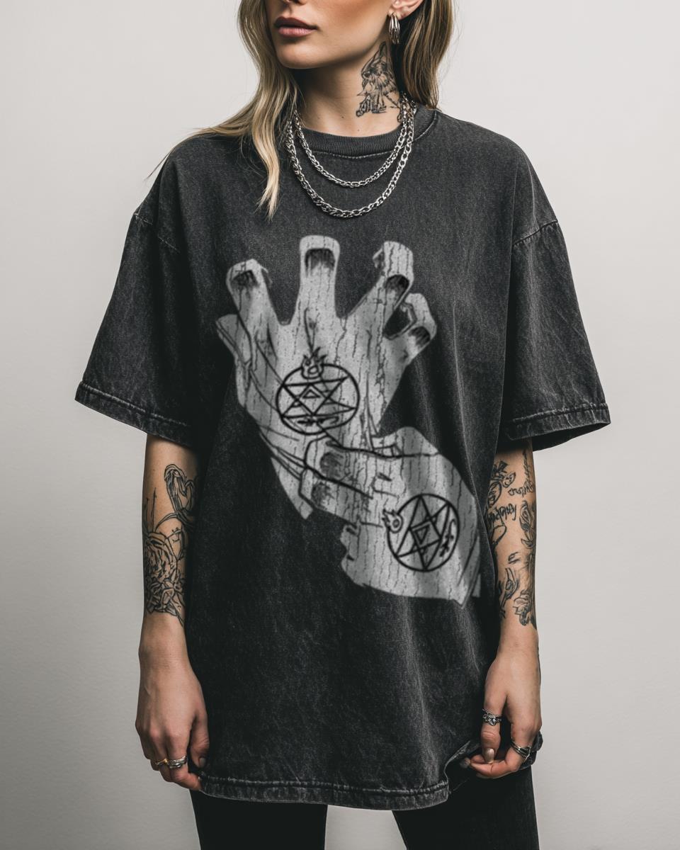 What Makes This Fullmetal Alchemist Riza’s Tattoo T-Shirt Iconic? Display your devotion to the world of alchemy with this Riza’s Tattoo Fullmetal Alchemist T-shirt, inspired by the profound anime and manga series. Featuring a meaningful printed graphic on a unique black acidwash background, this 100% cotton tee offers a comfortable regular fit for dedicated FMA…