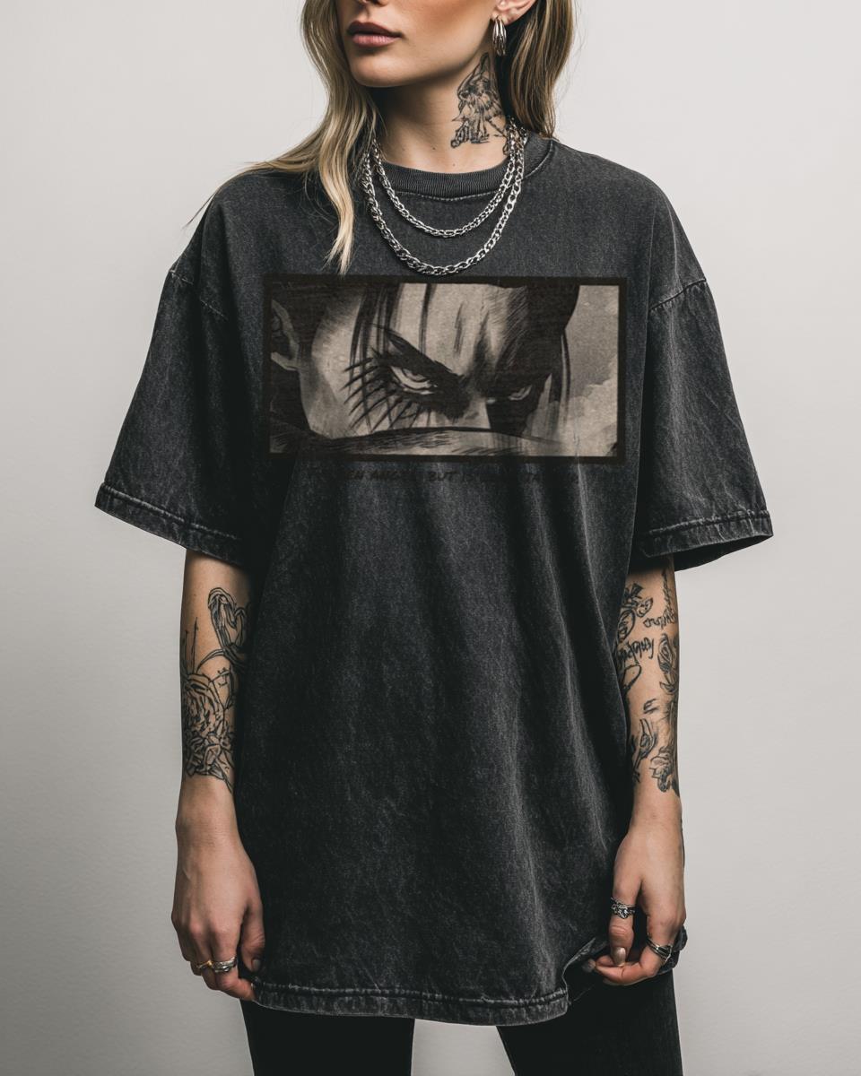 Are you drawn to the complex fate of Attack on Titan’s protagonist? Explore the darker side of destiny with this “Fallen Angel Eren Jaeger” T-shirt. This unique fanart depicts Eren Yeager in a poignant, fallen angel motif, blending the tragic beauty with the immense power of the Attack on Titan universe. It’s a profound piece…