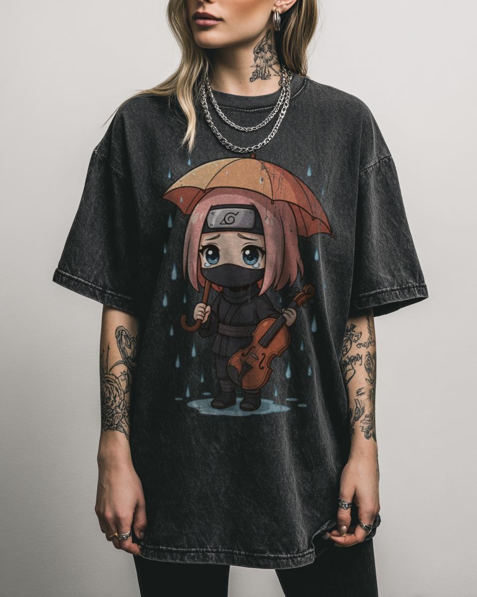Experience the tender beauty of an emotional anime moment! This ‘Kawaii Chibi Ninja Girl in Rain with Violin and Umbrella’ design captures a sad yet serene scene. It’s a soft, romantic anime style, perfect for violin lovers and those who appreciate emotional, cute characters. Why You’ll Love This Emotional Anime Tee: Kawaii chibi ninja girl…