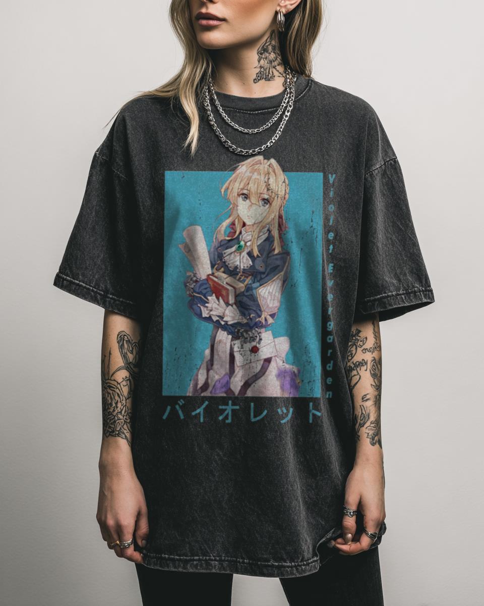 Are you deeply moved by the beautiful story and character of Violet Evergarden? Embrace the elegance and emotional depth of Violet Evergarden with this beautiful graphic t-shirt. This design features the iconic Auto Memory Doll, capturing her grace and poignant journey from the beloved anime and manga series. It’s a perfect piece for fans who…