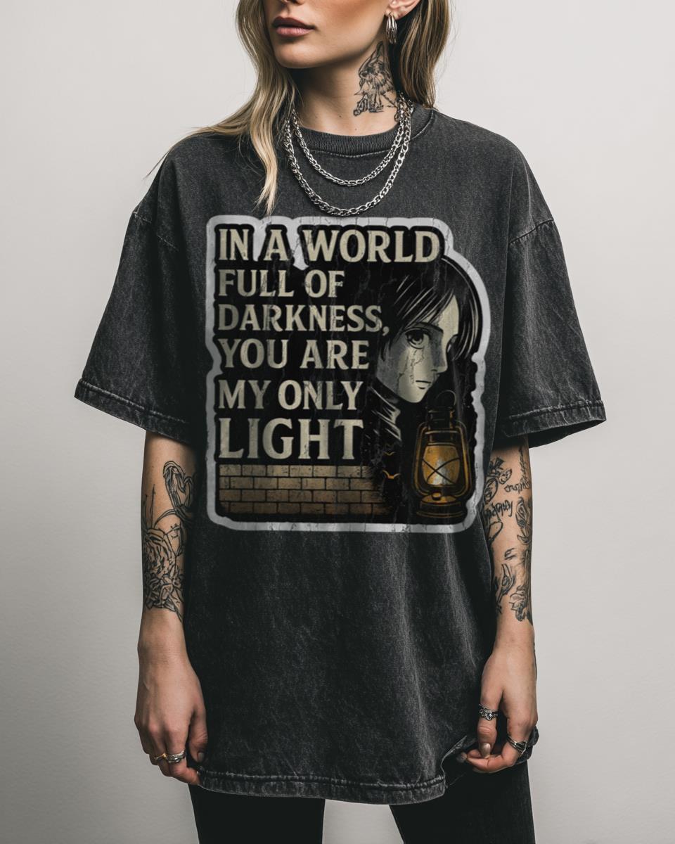 Searching for a powerful and emotional anime design that speaks to the soul? Discover the beauty in resilience with this “Only Light in the Darkness” emotional anime girl design. Featuring a glowing lantern in a dark aesthetic, this graphic tee embodies hope and love amidst a post-apocalyptic vibe. It’s a meaningful quote and strong female…