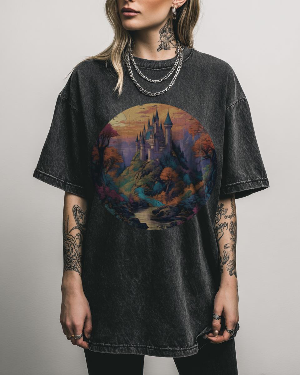Why This Mystic Citadel Fantasy Tee is an Enchanting Choice? Step into a world of wonder with this ‘Mystic Citadel’ fantasy castle graphic tee, depicting an enchanting realm of magic and adventure. This black acidwash 100% cotton shirt is perfect for fantasy lovers, role-playing gamers, and anyone drawn to mythical landscapes. Features of This Magical…