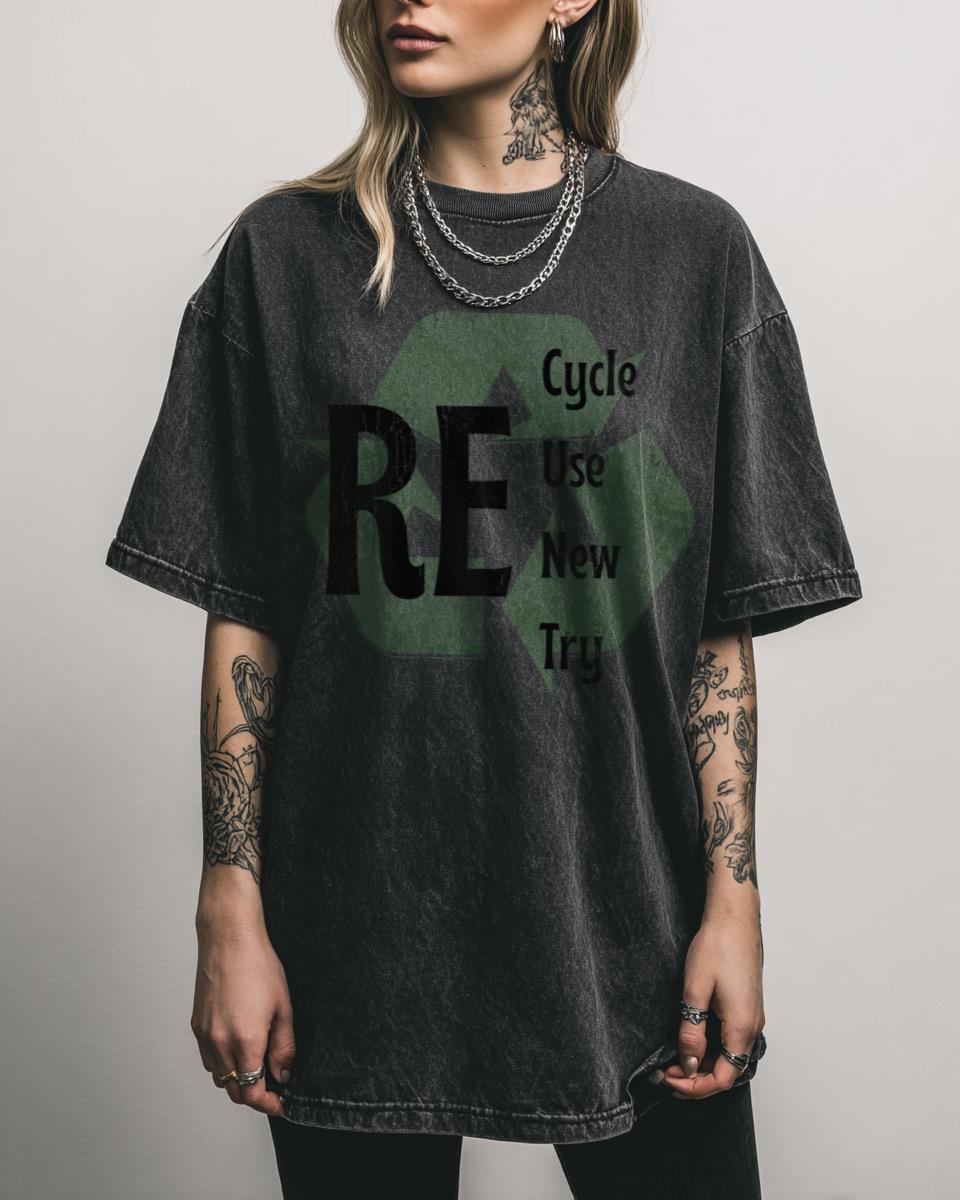 Want to promote recycling with a dose of humor and a bit of an edge? Convey an important environmental message with a twist with the ‘Recycle with a message’ design. This graphic playfully combines the core principles of ‘Recycle, Renew, Reuse’ with a relatable, modern attitude, making it a unique and memorable statement piece. It’s…