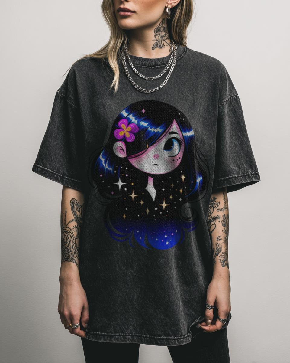 What Makes This Starlit Thoughts Anime Tee So Captivating? Immerse yourself in cosmic beauty with this **Starlit Thoughts Cosmic Anime Girl Black Acidwash Tee**. Featuring a dreamy portrait of a character with big eyes and galaxy hair, this graphic shirt captures a whimsical, celestial aesthetic perfect for fans of digital art and fantasy. Why This…