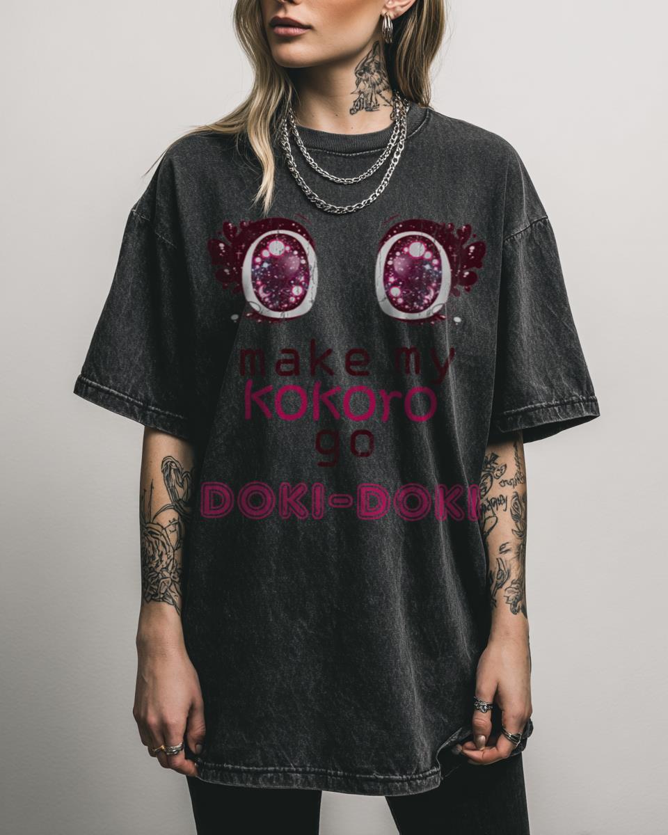 Let your heart go “Doki-Doki” with this super cute design! This adorable “you make my KOKORO go DOKI-DOKI” design features charming, kawaii elements with pink sparkles and expressive eyes, capturing the fluttery feeling of a magical girl’s heart. Perfect for anime fans, magical girl enthusiasts, and anyone who loves cute, sparkly aesthetics. It’s a delightful…