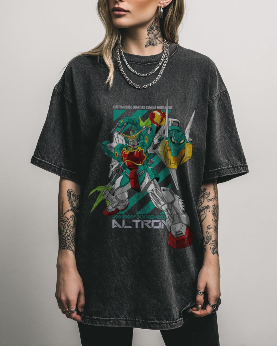Why This Altron Gundam Wing T-Shirt is a Collector’s Item? Gear up for battle with this **Altron Gundam T-shirt**, a custom fan-created design inspired by the legendary Gundam Wing series. Featuring a detailed graphic of the Shenlong-based mecha, this 100% cotton tee with a black acidwash finish offers a regular fit and dropped shoulders, making…