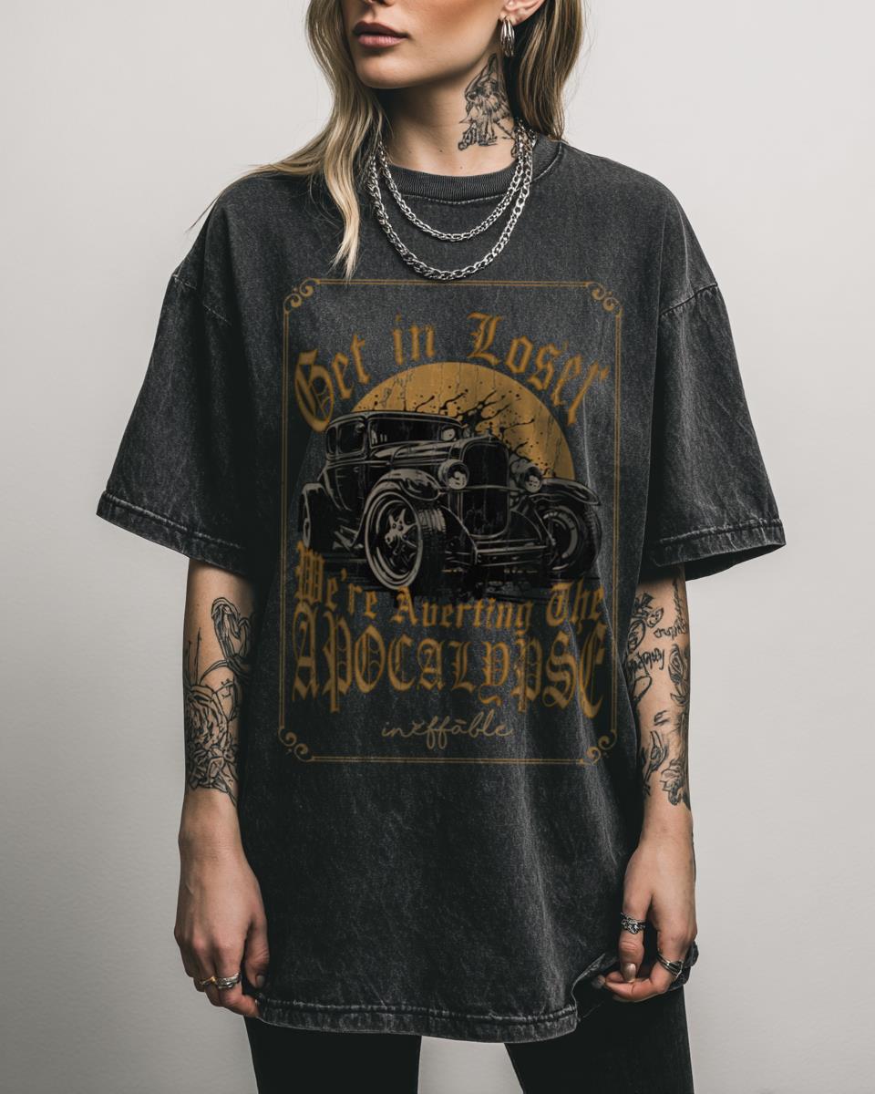 Are you ready to avert the apocalypse with your favorite angel and demon? Buckle up for an adventure with this ‘Get in loser we are Adverting the apocalypse! Angel Car Art’ T-shirt, inspired by the beloved Good Omens. This charming design features fanart of Crowley and Aziraphale in their iconic Bentley, capturing their unique bond…