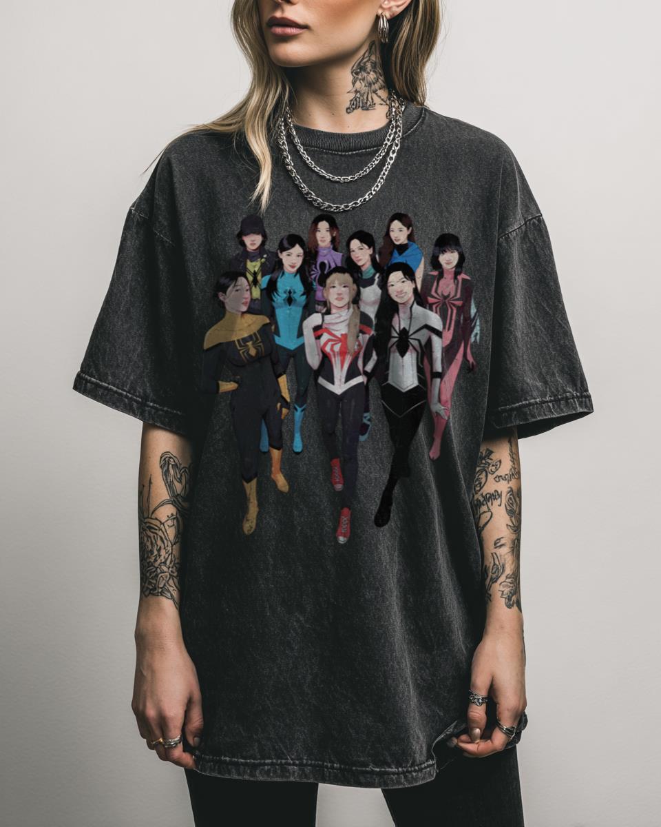 Combine your love for K-Pop and superheroes with this amazing Spider-TWICE fan art! This unique design features the TWICE group members in an unmasked superhero rendition, blending the iconic Spider-Man aesthetic with the charm of your favorite K-Pop idols. A fantastic crossover for fans of both worlds. Why You’ll Love This T-Shirt: Unique Spider-TWICE unmasked…