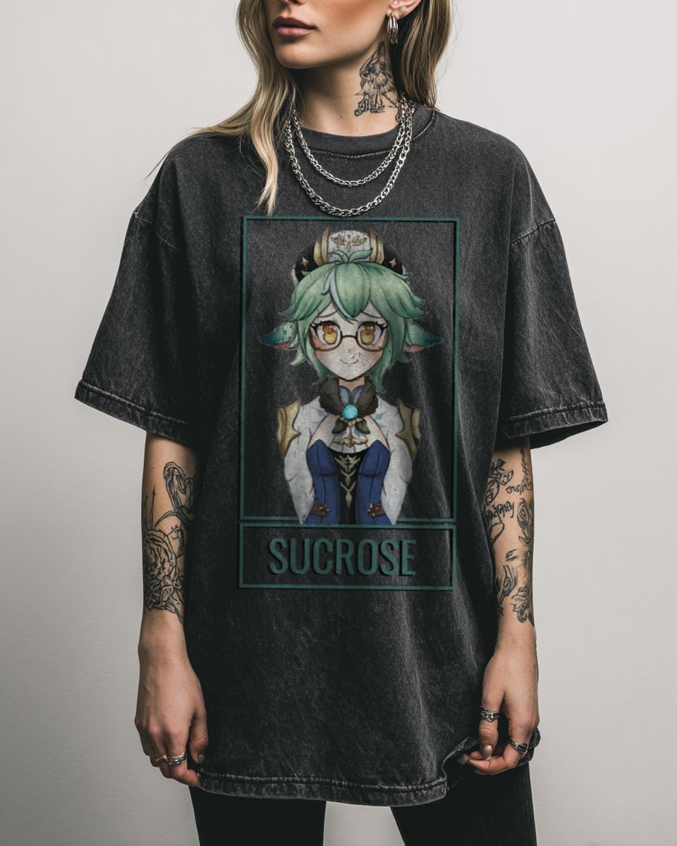 Are you an avid adventurer in the world of Teyvat? Show your love for the adorable alchemist with this “Sucrose Genshin Impact” T-shirt. This charming fanart design features Sucrose, the shy but brilliant researcher from the popular Genshin Impact game, capturing her cute and kawaii essence. It’s a perfect way for players to express their…