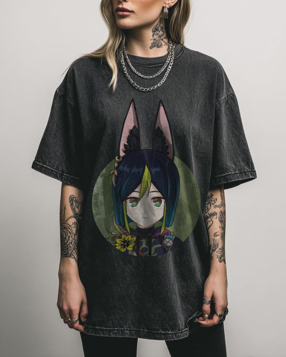 Show Your Love for Tighnari with This Genshin Impact Fanart Tee? Express your fandom with our adorable Tighnari Genshin Impact Fanart T-Shirt! Featuring a cute chibi-style depiction of the beloved Sumeru Forest Ranger, this unique black acidwash tee is a must-have for any Genshin Impact player or anime gaming enthusiast. Why This Tighnari Chibi Tee…