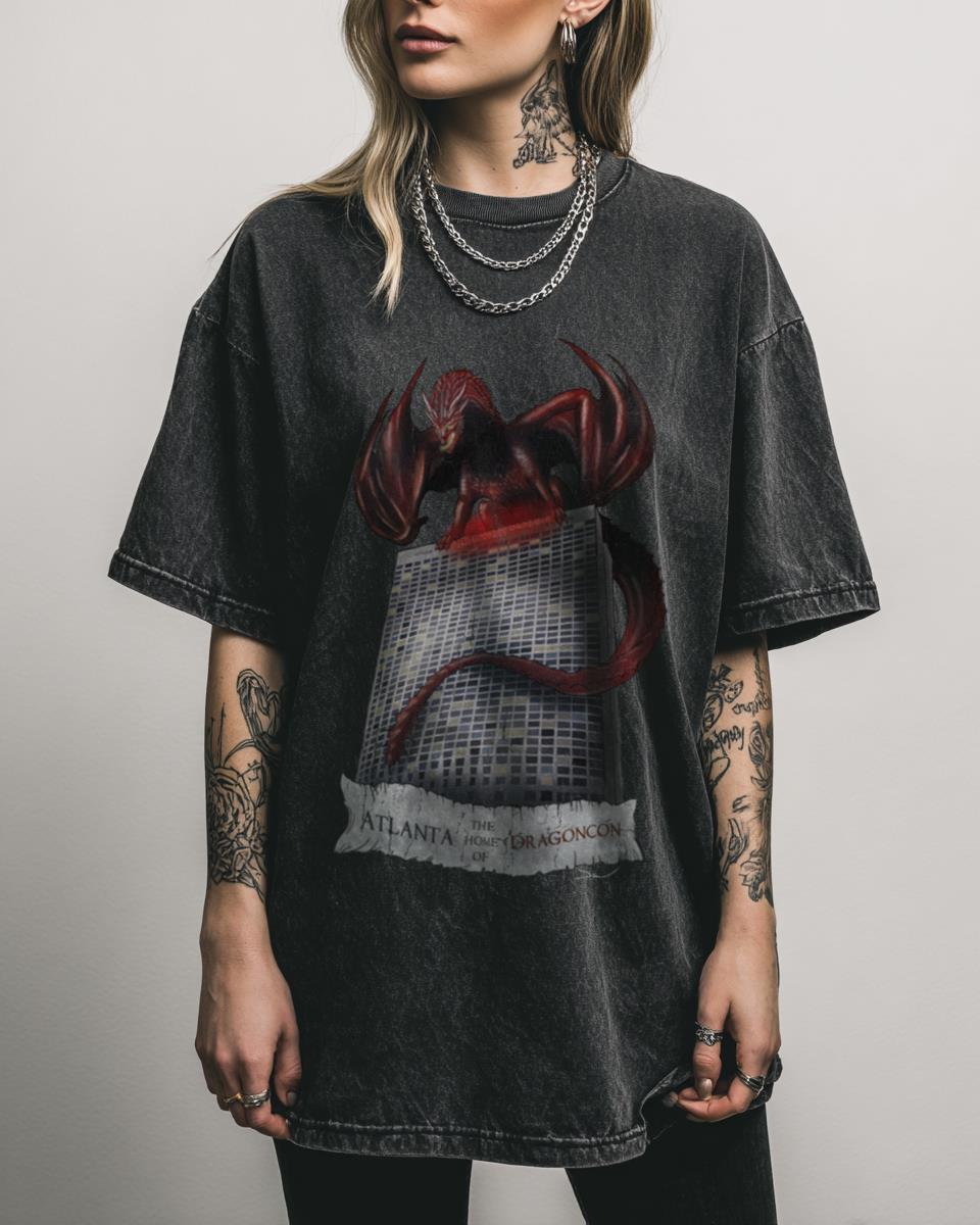 Why This Atlanta Dragoncon Red Dragon Art Graphic Tee is a Must-Have? Show your convention pride with this striking Atlanta Dragoncon Red Dragon Art Graphic Tee. Featuring a vivid printed graphic of a red dragon, this black acidwash t-shirt is perfect for fans of Dragon Con and fantasy art. Crafted from 100% cotton with a…