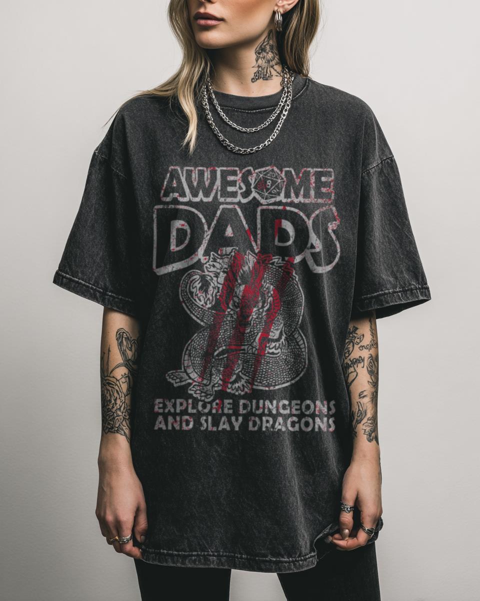 Why This D&D Dad T-Shirt is Perfect for Awesome Roleplaying Fathers? Celebrate the hero in your life with this Awesome Dads Explore Dungeons & Slay Dragons funny RPG tee. Crafted from 100% heavyweight Black Acidwash cotton, this graphic t-shirt is the ideal gift for any Dungeon Master Dad or roleplaying father who loves fantasy adventures….