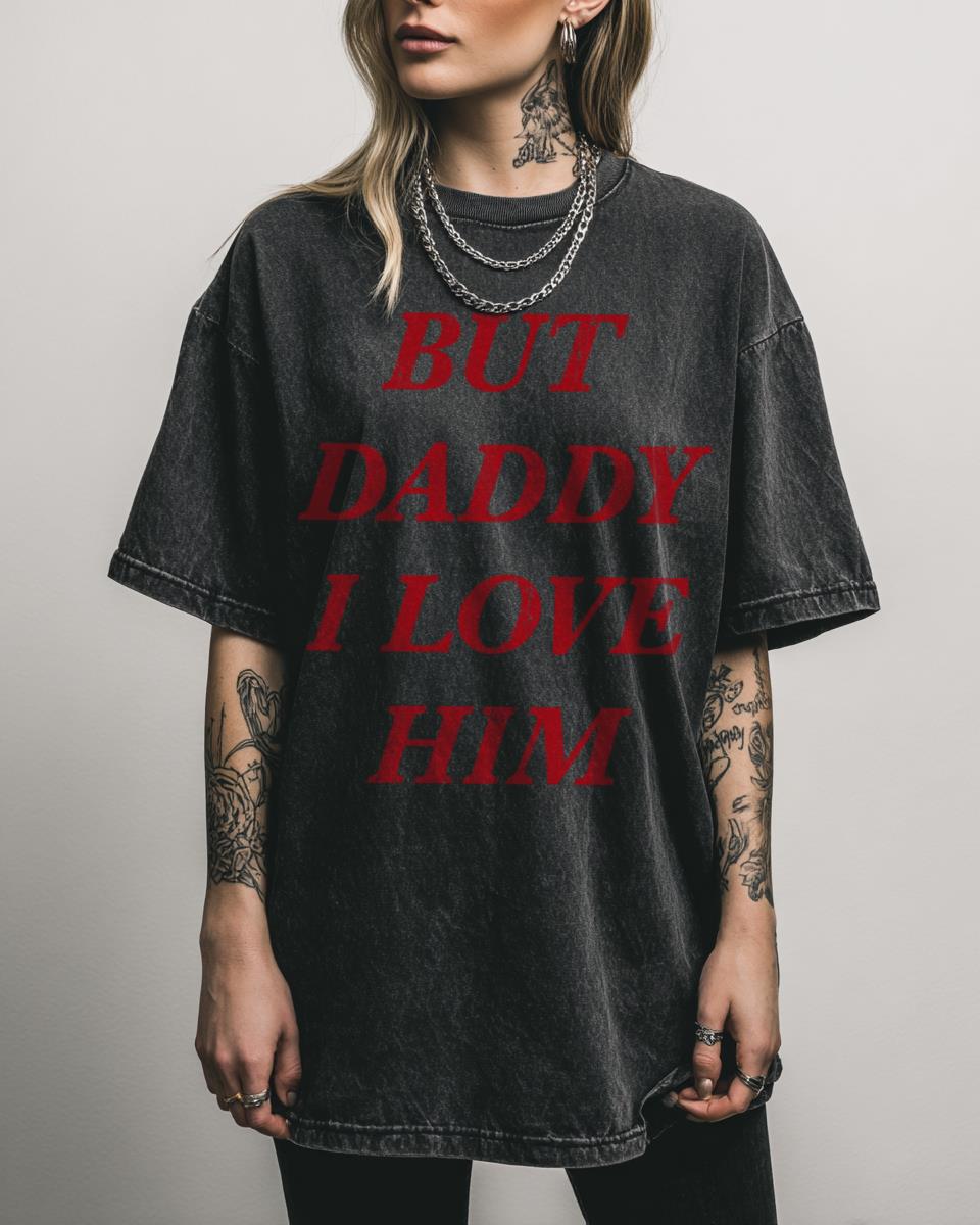 Declare your fandom with this iconic quote, perfect for any Harry Styles fan! Express your love for pop music and Harry Styles with this ‘But Daddy I Love Him’ graphic tee. This text-based design, likely featuring bold red lettering, is a direct and playful reference to a memorable quote often associated with fan culture and…