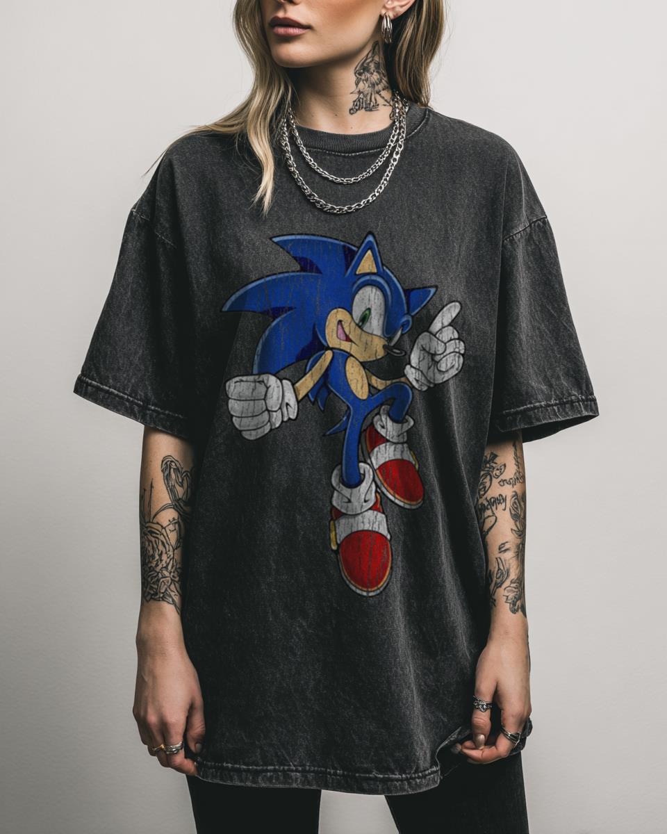 Ready to Go Fast? Get Your Sonic the Hedgehog 90s Video Game T-Shirt! Race into nostalgia with this Sonic the Hedgehog 90s Video Game T-Shirt, celebrating the iconic Sega character and his supersonic speed. Made from 100% heavyweight Black Acidwash cotton, this unisex tee is perfect for any devoted fan of classic gaming and retro…