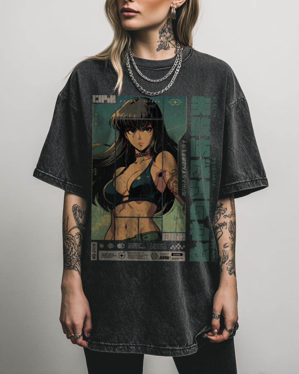 Are you drawn to the edgy aesthetic of 80s and 90s Japanese anime and Yakuza culture? Embrace the fierce style of the underworld with this ‘Yakuza Girl’ graphic tee. Featuring a cool, retro 90s anime illustration of a female character with a katana, this design blends Japanese street culture with samurai strength, perfect for fans…