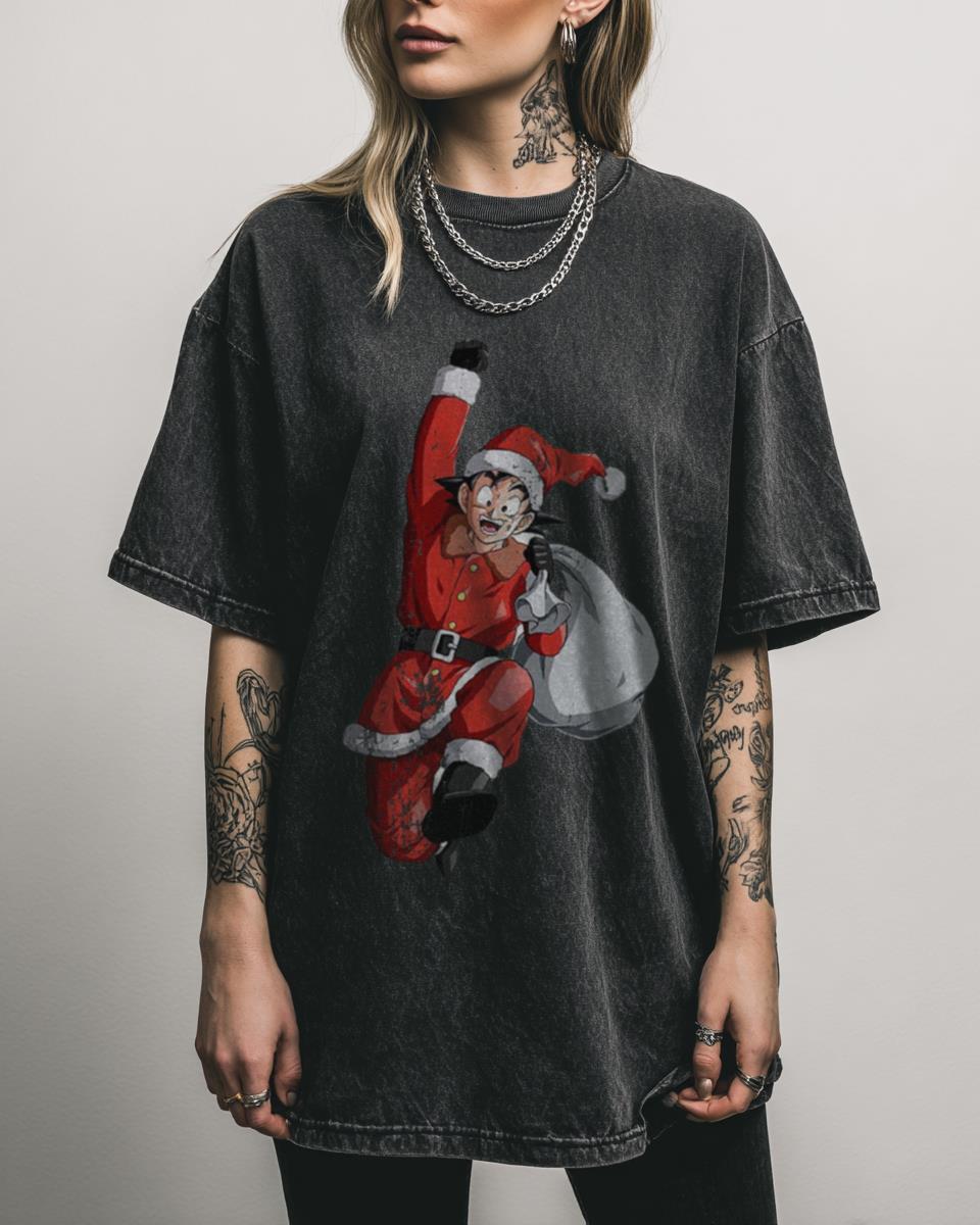 Celebrate the Holidays with This Goku Christmas T-Shirt? Unleash festive power levels with this cheerful Goku Christmas T-Shirt, featuring a fun DBZ Anime Santa graphic. This fan-created design brings Son Goku into the holiday spirit, presented on a stylish black acid wash tee perfect for spreading cheer and showcasing your love for Dragon Ball Z…
