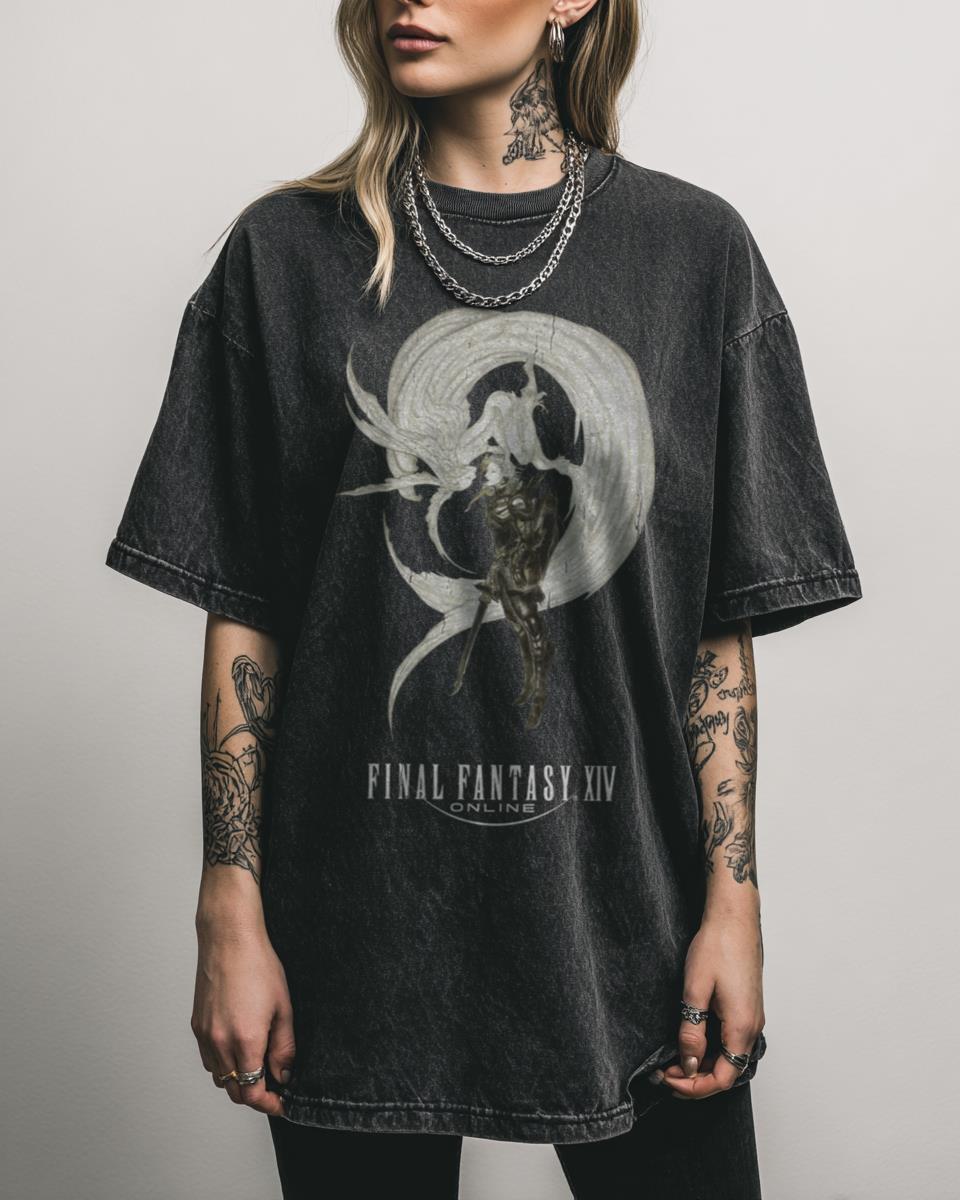 Are you a true connoisseur of Final Fantasy art and classic Japanese animation? Adorn yourself with this exquisite ‘Final Fantasy XIV – Yoshitaka Amano Artwork’ design. Featuring the iconic, ethereal style of Yoshitaka Amano, this tee is a tribute to the legendary artist’s contribution to the Final Fantasy universe, perfect for fans of both FFXIV…