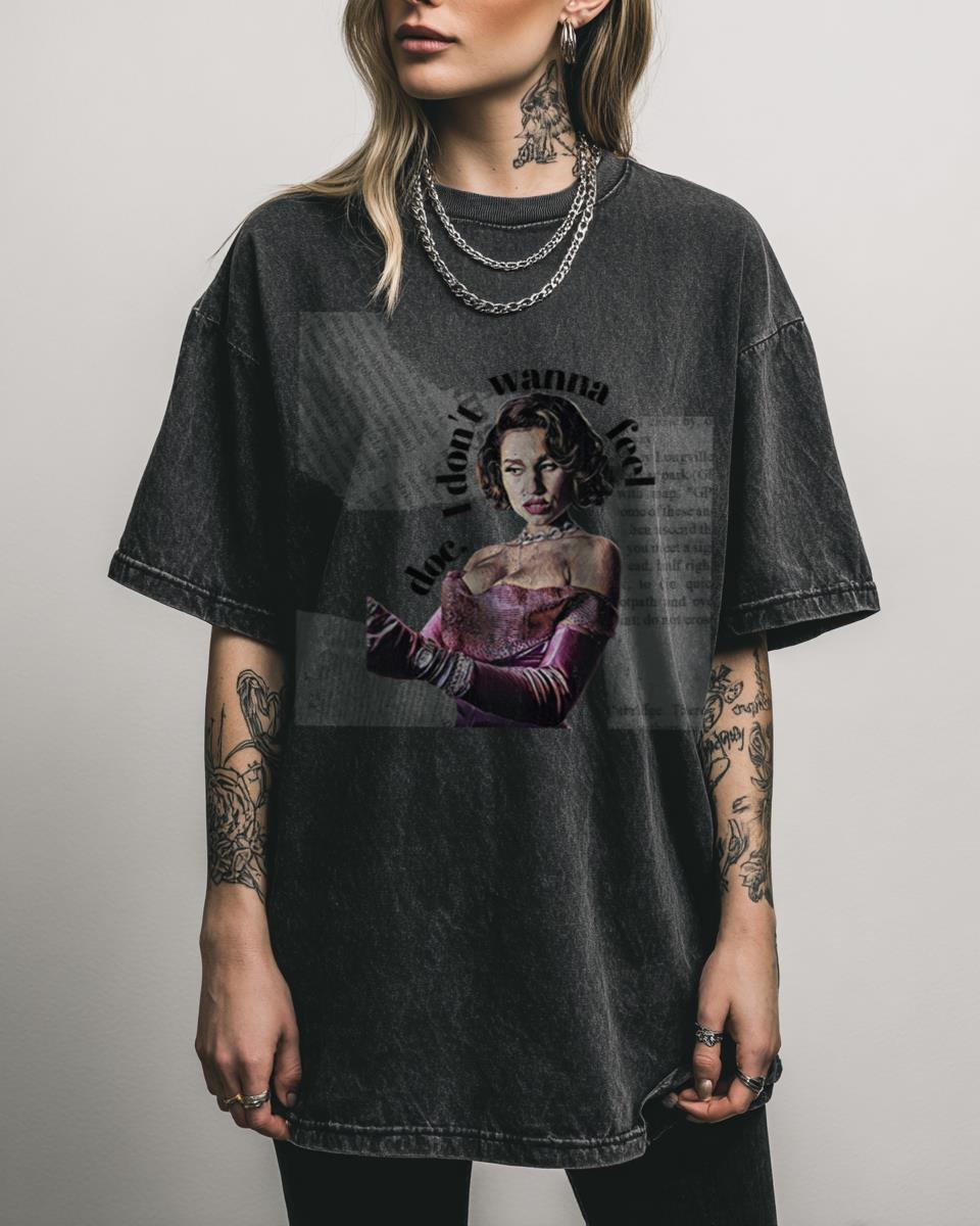 Do you ever just want to escape the world and its overwhelming feelings? This expressive design captures a mood of escapism with the poignant phrase “Doc, I don’t wanna feel,” possibly inspired by the song “Escapism” by Raye. It subtly incorporates anime-inspired floral elements, drawing connections to characters like Sailor Mars or Ami Mizuno, creating…