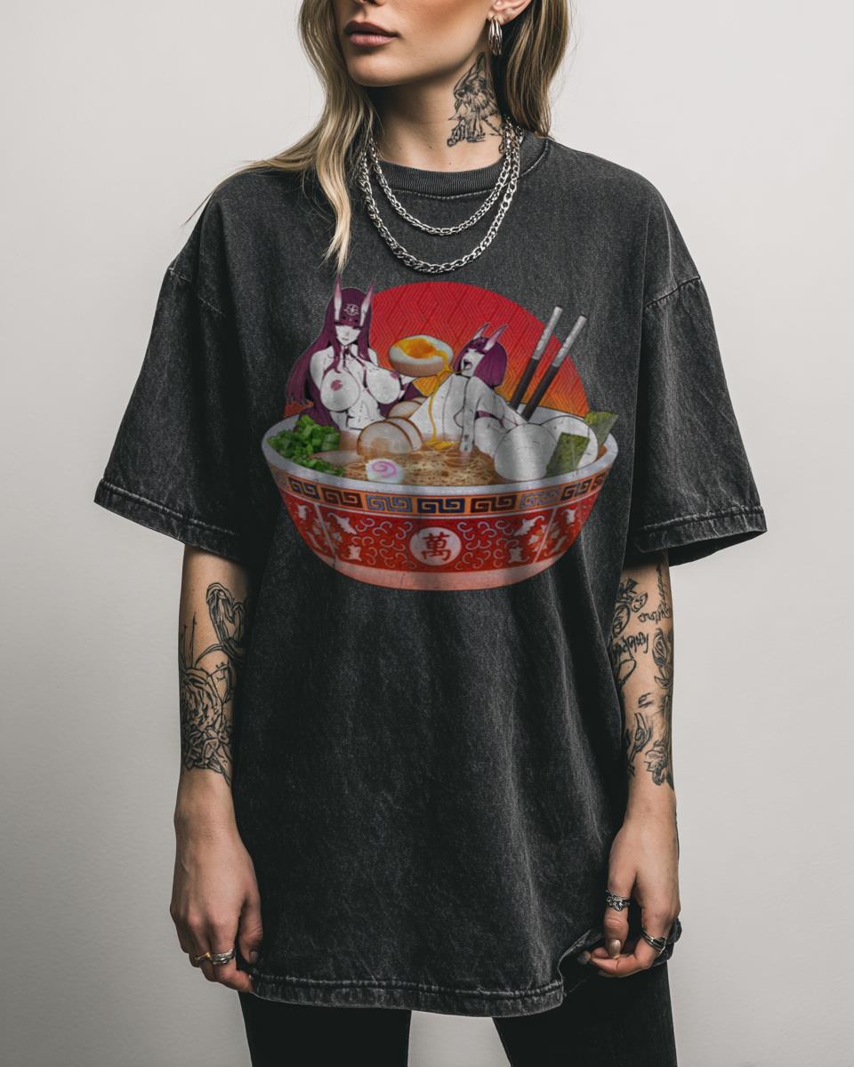 Dare to combine your love for Japanese food with a touch of playful spice? This ‘Oni Ramen’ design features a seductive demon girl enjoying a bowl of ramen, blending traditional Japanese elements with a modern, lewd manga aesthetic. Perfect for fans of doujinshi, hentai, and unique waifu art that stands out. Why You’ll Love This…