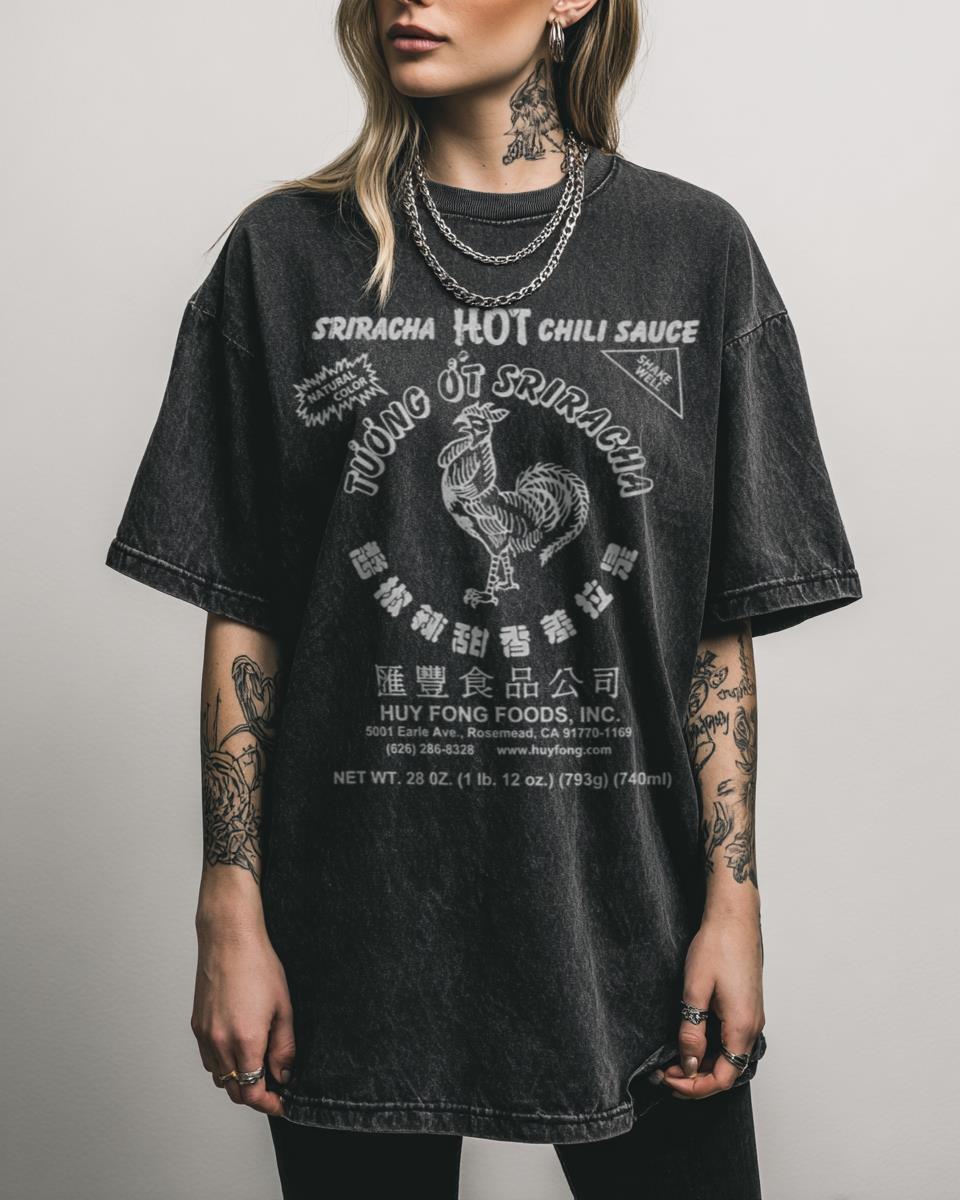 Are you a fan of spicy flavors and trendy foodie apparel? Heat things up with this ‘Spicy Rooster’ acidwash T-shirt, featuring a cool design inspired by popular hot sauce labels like Sriracha and Tobasco. This trendy graphic is perfect for chili lovers, foodies, and anyone who enjoys a kick of flavor. It’s a best-selling design…