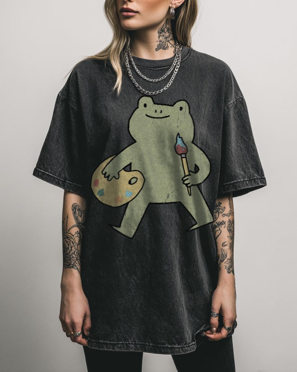 What Makes This Frog and Snail Tee So Aesthetic? Capture a moment of quiet friendship in the wild with this aesthetic frog and snail t-shirt. This charming design features a cute cartoon frog and a friendly snail surrounded by simple floral elements. Its muted color palette and simple lines give it a trendy, aesthetic vibe…