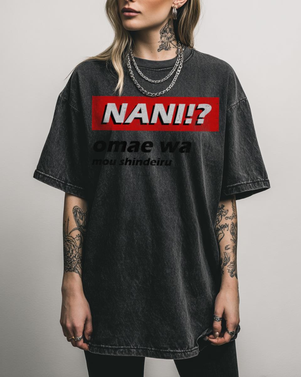 Ready to unleash an iconic anime catchphrase? Get ready to declare ‘NANI !? – Omae wa mou shindeiru’ with this epic anime-inspired design! This graphic pays homage to the legendary ‘Fist of the North Star’ meme, instantly recognizable to any true anime fan. It’s a powerful and intense statement, perfect for those who appreciate classic…