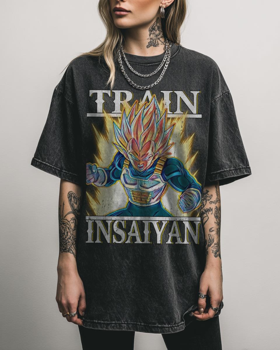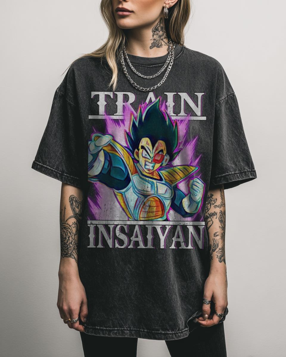 Channel your inner Prince of Saiyans with this epic ‘Train Insaiyan’ tee featuring Scouter Vegeta! This design cleverly combines the iconic ‘Train Insaiyan’ phrase with a classic image of Vegeta wearing his scouter, perfect for any Dragon Ball Z enthusiast. It’s a great way to express your dedication to both fitness and anime with a…