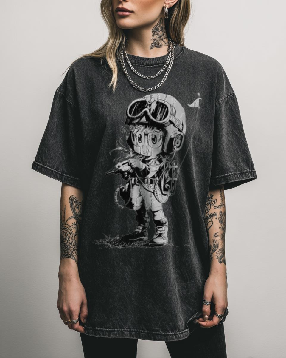 Ready to bring some chaotic fun from Penguin Village into your wardrobe? Meet Arale Norimaki, the iconic robot girl from Akira Toriyama’s Dr. Slump! This design celebrates the beloved character, known for her incredible strength and innocent mischief, making it a perfect piece for fans of classic anime and manga. Classic Toriyama Charm Features an…