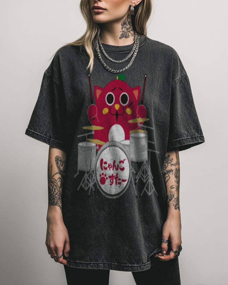 Are you captivated by the drumming prowess of a certain apple-cat mascot? Rock out with the one and only “Nyango Star” with this active drummer T-shirt! Featuring the beloved Japanese cat mascot in full drumming action, this design perfectly captures his energetic and funny persona. It’s a fantastic piece for fans of unique Japanese culture,…