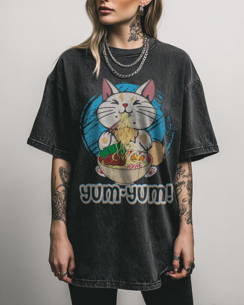 Do you adore cute cats and crave delicious Japanese ramen? Indulge in your favorite passions with this ‘Yum Yum Cat Love Ramen Noodle’ design! Featuring an adorable kawaii cat enjoying a bowl of ramen, this funny graphic tee is perfect for cat lovers, ramen enthusiasts, and anyone who appreciates cute Japanese food art. A great…