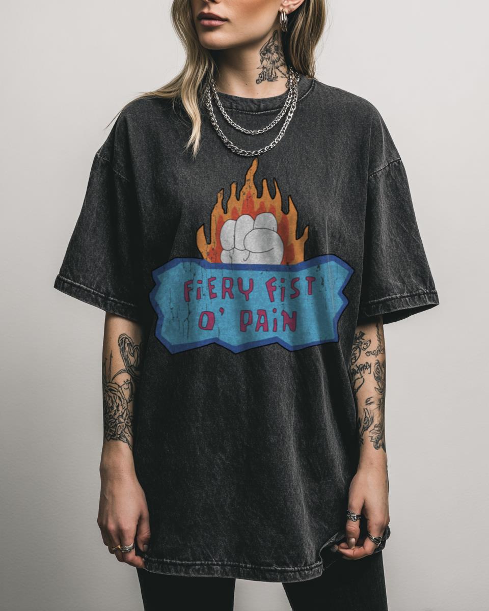 Ready for a day of undersea fun at Glove World? Relive the hilarious adventures of Spongebob and Patrick at Glove World with this ‘Fiery Fist O’ Pain’ T-Shirt! This design is a nostalgic tribute to the iconic Nickelodeon cartoon, capturing one of its most memorable gags. Perfect for fans of Spongebob Squarepants and classic animated…