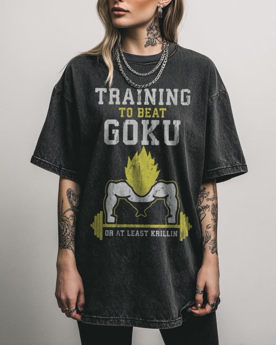 Are you pushing your limits to reach Super Saiyan levels, or maybe just Krillin’s? Get a laugh and some motivation with this “Training To Beat Goku Or At Least Krillin” design! This funny anime gym tee is perfect for Dragon Ball Z fans who love a good challenge and appreciate the humor in their fitness…