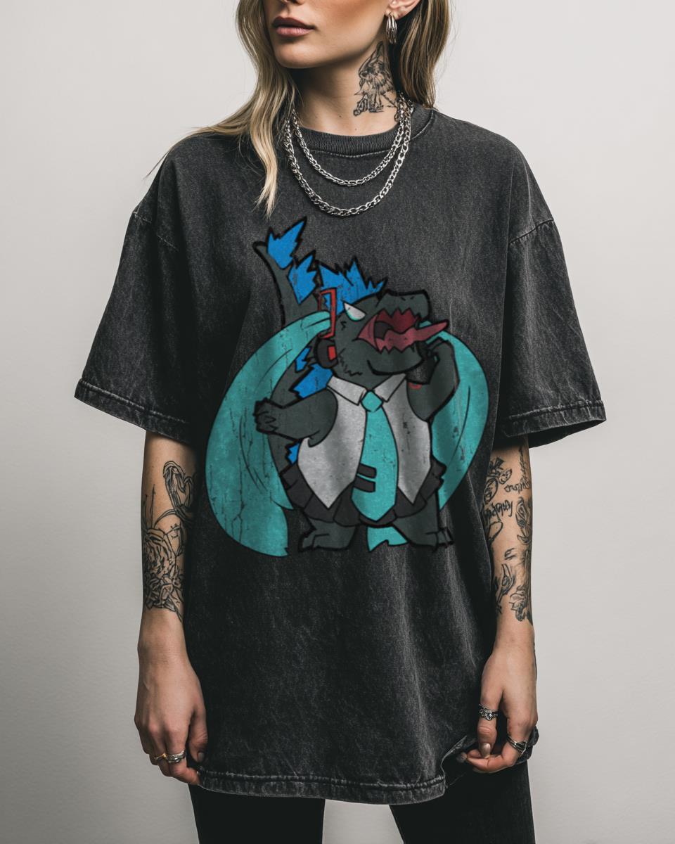 Ever wondered what happens when the Queen of Vocaloid meets the King of the Monsters? Prepare for an epic, yet adorable, crossover with this ‘Godzilla Miku’ T-shirt! This fun cartoon design mashes up the legendary kaiju Godzilla with the beloved Vocaloid idol Hatsune Miku, creating a wonderfully silly and unique graphic. It’s perfect for fans…