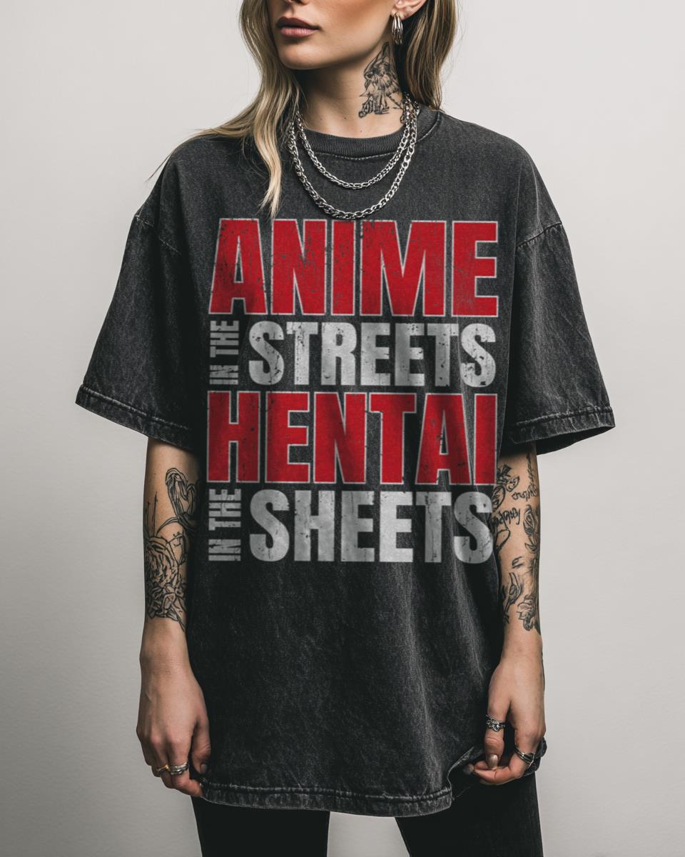 Do you appreciate a humorous and edgy take on anime culture? Show off your playful side with this funny and trendy “Anime In The Streets Henti In Sheets” design. This graphic offers a humorous and cheeky nod to Japanese anime culture, perfect for those with a bold sense of humor. It’s a statement piece that’s…