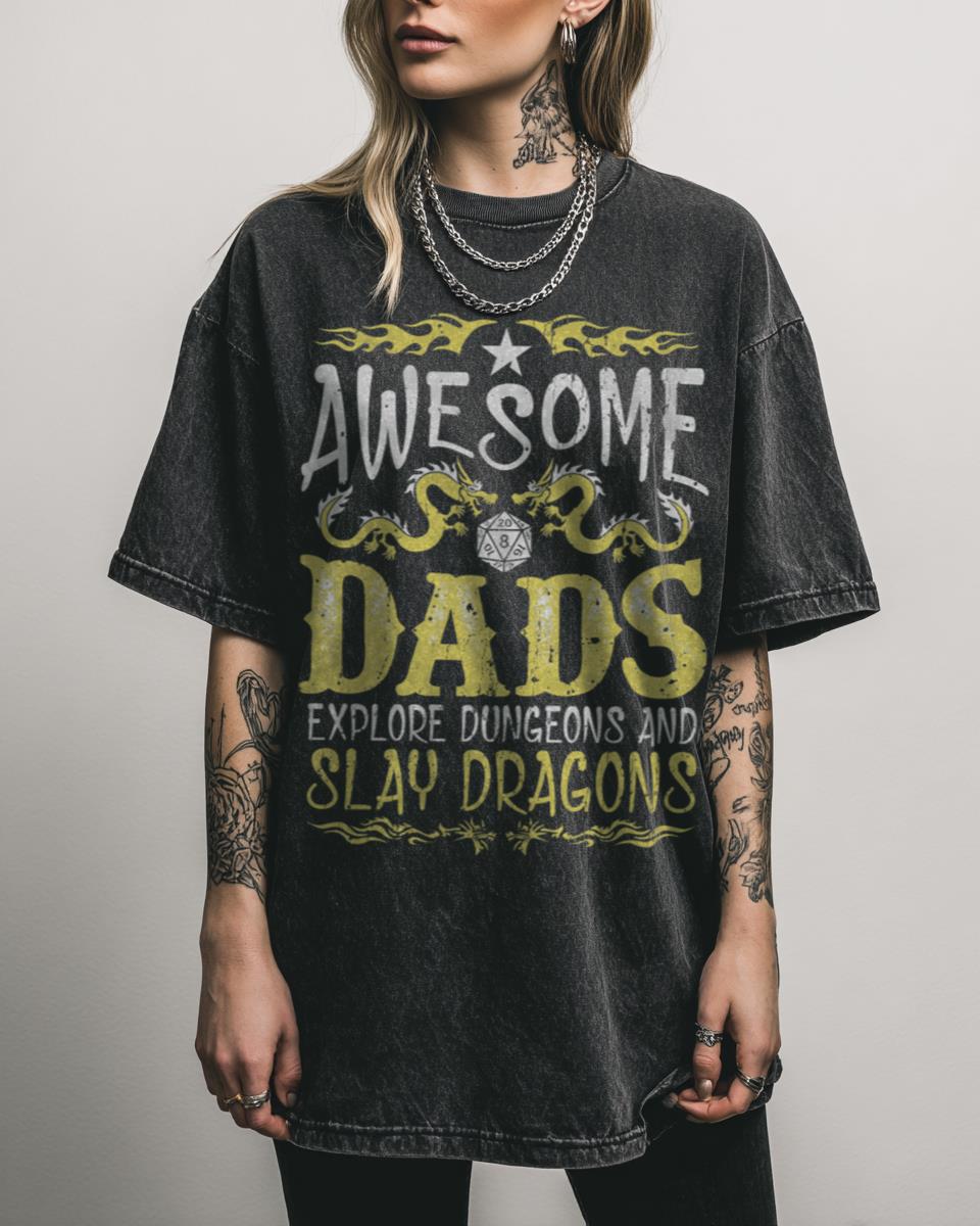 Is your dad an awesome Dungeon Master who slays dragons and explores dungeons? Celebrate the legendary gamer dad in your life with this ‘Awesome Dads Explore Dungeons And Slay Dragons’ T-shirt! This funny and heartfelt design is perfect for Father’s Day or any occasion to honor the dads who balance family life with epic D&D…