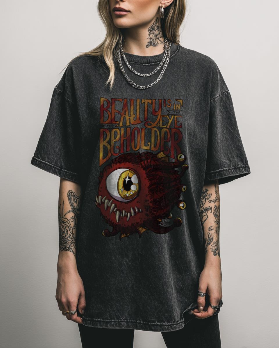 Do you find beauty in the most unexpected places, even a monstrous gaze? Unleash your inner Dungeon Master with this hilarious ‘Beauty is in the Eye of the Beholder’ T-shirt! Perfect for Dungeons & Dragons players and Critical Role fans, this design is a clever take on a classic D&D joke. Show off your love…