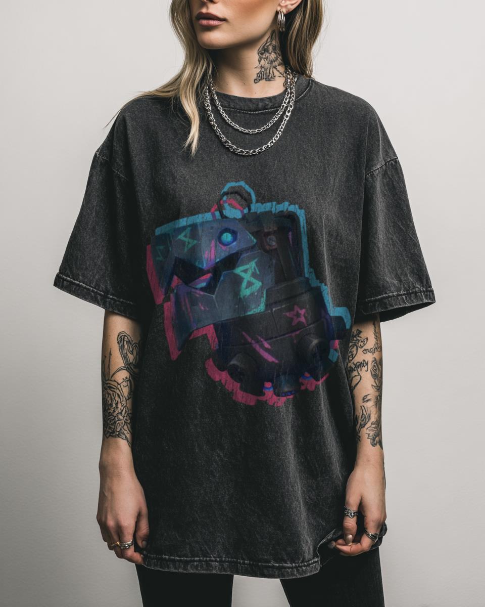 Explode with Style in This BOOM Grenade Arcane Tee! Unleash your inner Jinx with this action-packed BOOM Grenade Arcane League of Legends T-shirt. Featuring a fan-created graphic inspired by the popular game and animated series on a cool black acidwash fabric, this tee is perfect for any gamer. Why This Gaming Graphic Tee is a…