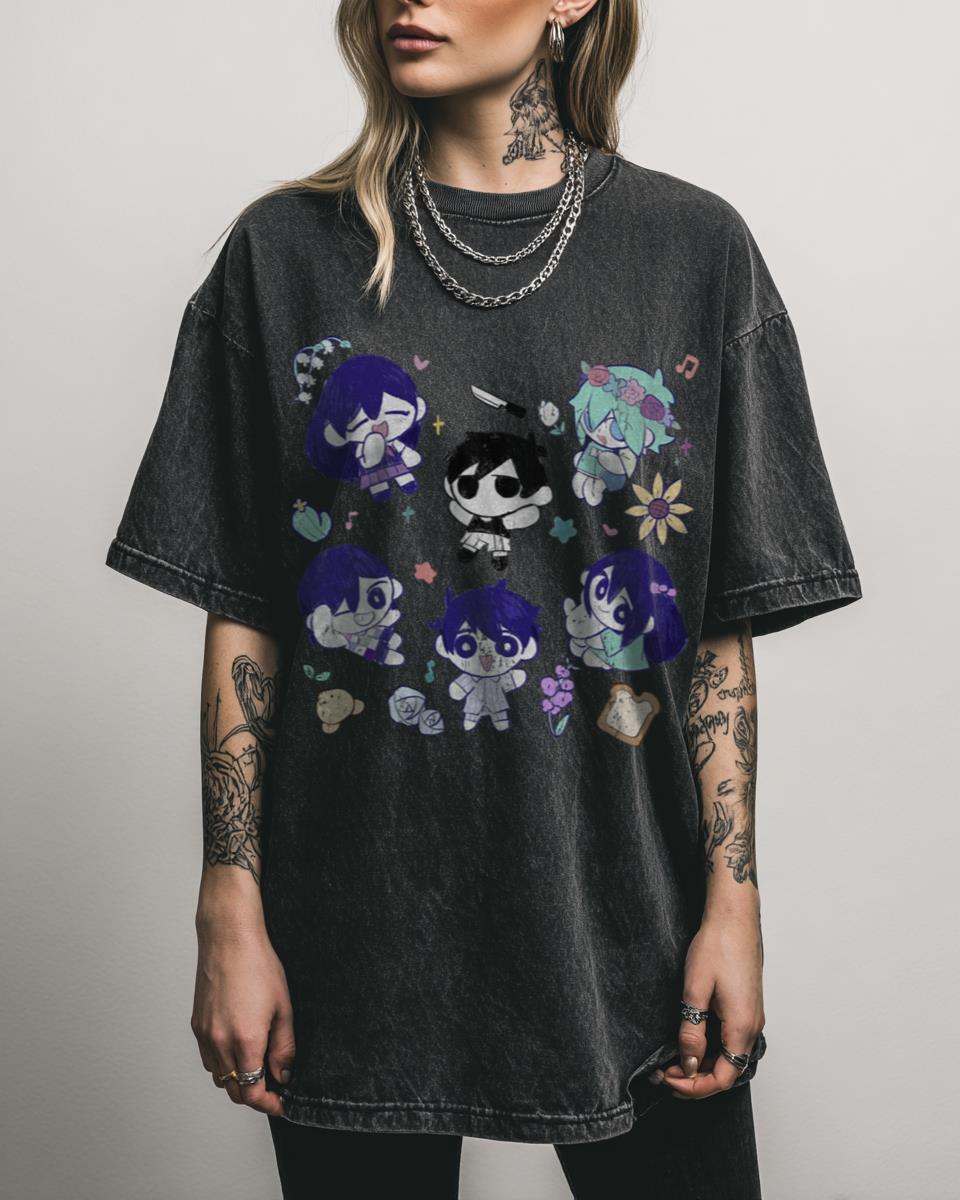 Are you ready to explore the hauntingly beautiful world of Omori and its unforgettable characters? Gather your “Omori Friends” with this captivating T-shirt, featuring Aubrey, Basil, Kel, Mari, and Sunny from the acclaimed psychological horror RPG. This design perfectly captures the essence of Omori’s Dreamworld, making it a must-have for fans of the game and…