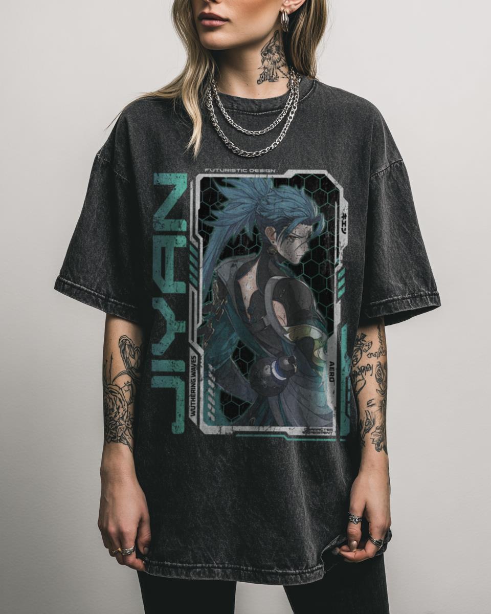 Why This Jiyan Wuthering Waves T-Shirt is a Must-Have for Rover? Join the ranks of the Resonators with this striking Jiyan Wuthering Waves graphic T-shirt! Featuring a fan-inspired design of the revered character from Kuro Games’ hit action RPG, this black acidwash tee is perfect for showcasing your dedication to the Wuwa universe. Key Features…
