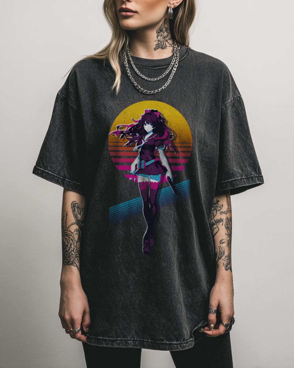 Are you ready to dive into a nostalgic 80s-inspired Honkai Impact universe? Power up your wardrobe with this electrifying graphic tee featuring Raiden Mei from Honkai Impact 3rd, reimagined in a stunning 80s retro style. This fanart design perfectly blends classic anime aesthetics with modern gaming, ideal for fans who love both vintage vibes and…